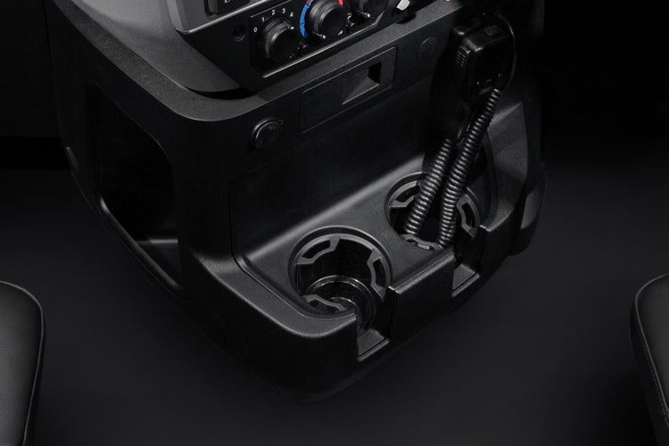 Oversized cup holders fit large drinks and there’s room for keys, devices and more in the easy-to-clean unit.